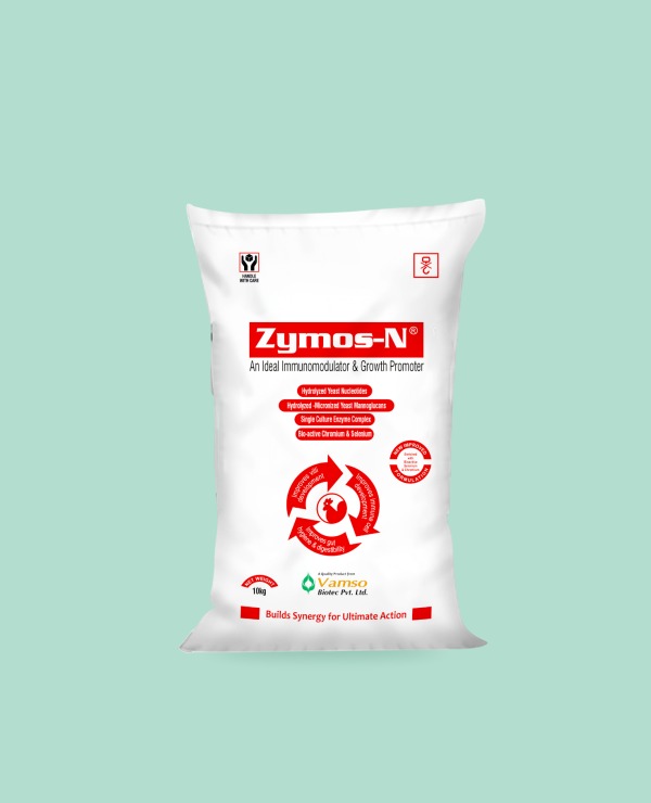 Zymos-N is a combination of hydrolyzed yeast nucleotides, hydrolyzed-micronized yeast mannoglucans, and a single-culture enzyme complex enriched with bioactive selenium and chromium nutrients that improve digestibility and enhance tissue repair for better intestinal functions. Its formulation promotes optimal absorption and utilization of nutrients, ensuring maximum benefits from the feed. It supports tissue repair in the intestines, which helps maintain a healthy gut environment and improves overall digestion.